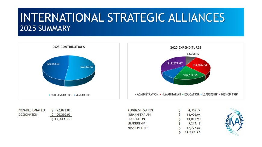 The International Strategic Alliances is a federally recognized 501(c)(3) organization. All contributions are tax-deductible under the Internal Revenue Code. Information regarding exemption documents, annual returns, or supporting documents is available for public inspection upon written request, in accordance with Internal Revenue Service guidelines.